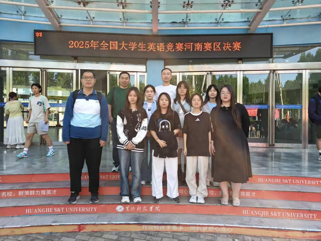 5月11日,2025年全国大学生英语竞赛(NECCS)河南赛区决赛在黄河科技学院举行。来自全省75所高校的389名学生参加了本次决赛,其中A类9人,B类44人,C类290人,D类46人。我校共7名同学从初赛中脱颖而出,参加了本次省赛。英语专业组(B类)由弓慧雯老师带队,非英语专业组(C类)由张庆凯、赵阳老师带队。