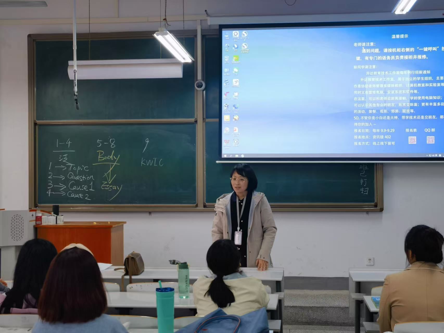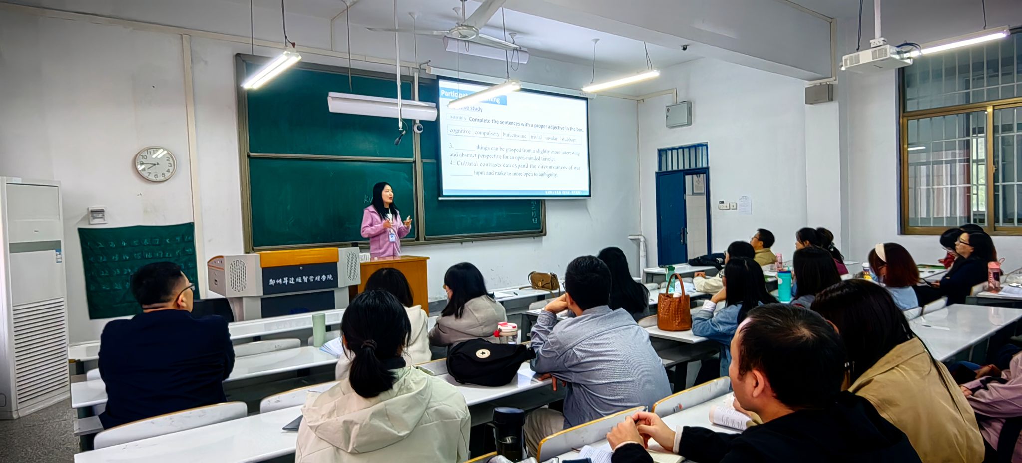 为进一步提升教师的整体教学能力,10月9日中午1点,外国语学院大英第二教研室在综合楼331教室举行了第三次教研活动。此次活动由第二教研室主任崔沙沙副教授主持,同时也邀请了第三教研室全体教师进行观摩,是一场针对综合英语教学方法和教学内容的学术研讨会的活动。