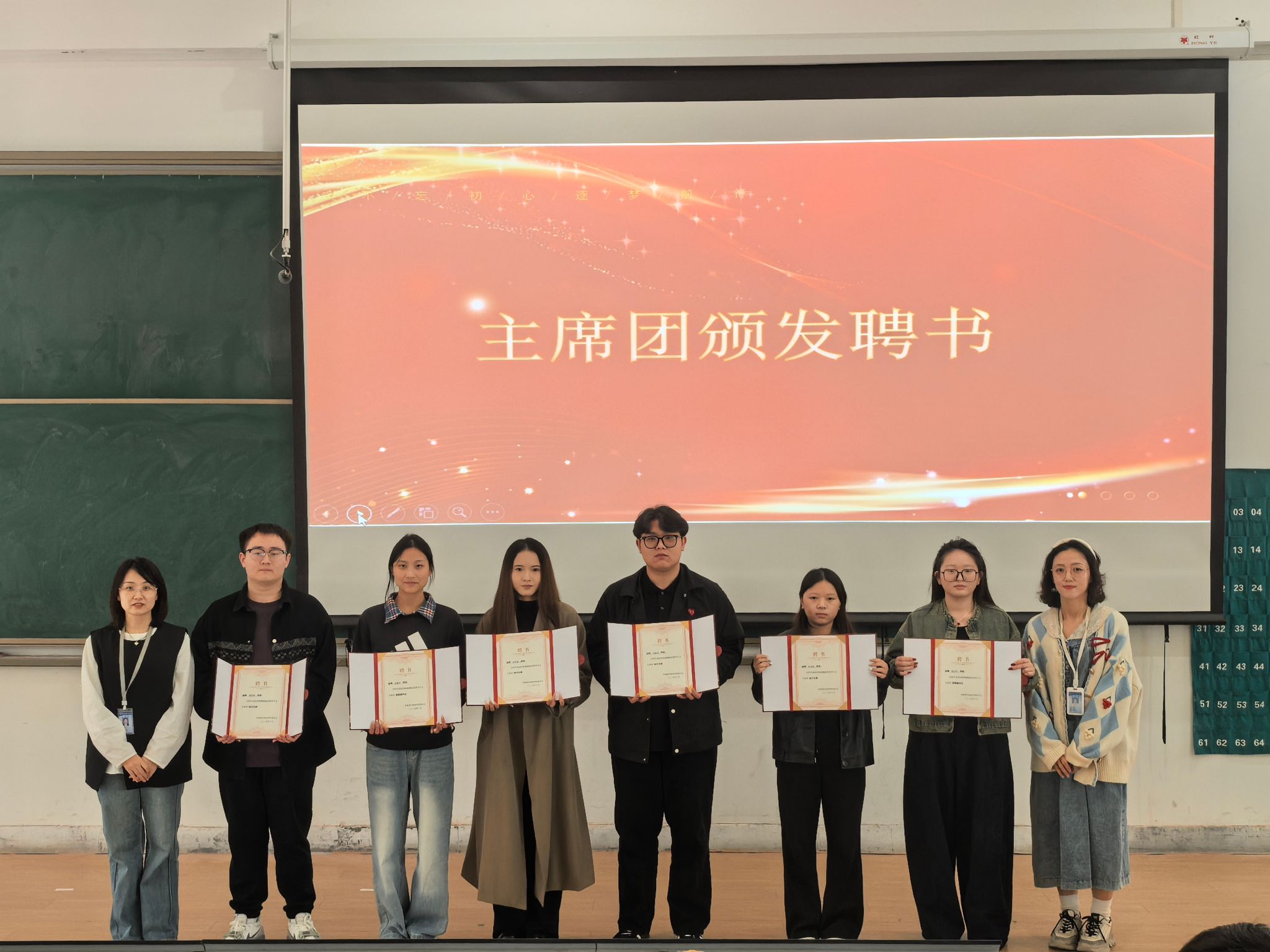10月15日中午,外国语学院在教一楼118教室隆重举行了第三十届团学成立大会暨第二十九届团学总结大会。此次大会旨在表彰在过去一年里辛勤付出、表现卓越的团学干部和志愿者,并为即将上任的第三十届团学主席团颁发聘书,以此激励更多同学投身到团学工作中,为学院的发展贡献力量。