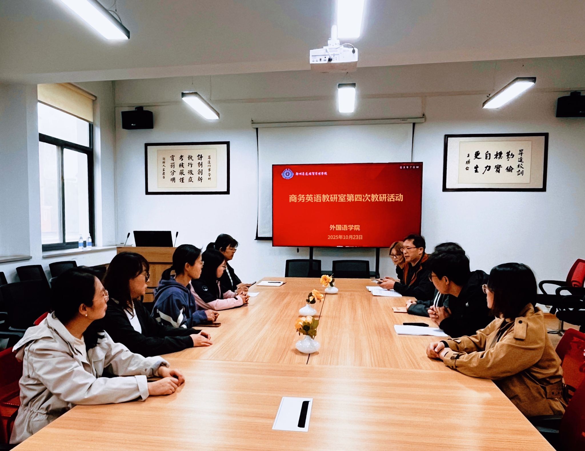 2025年10月23日13:30,商务英语教研室全体教师在教学一号楼206会议室开展本学期第四次教学工作研讨会,主要围绕开学八周以来教学相关工作的关键问题展开深入讨论,确保后半学期教学工作的有序进行。