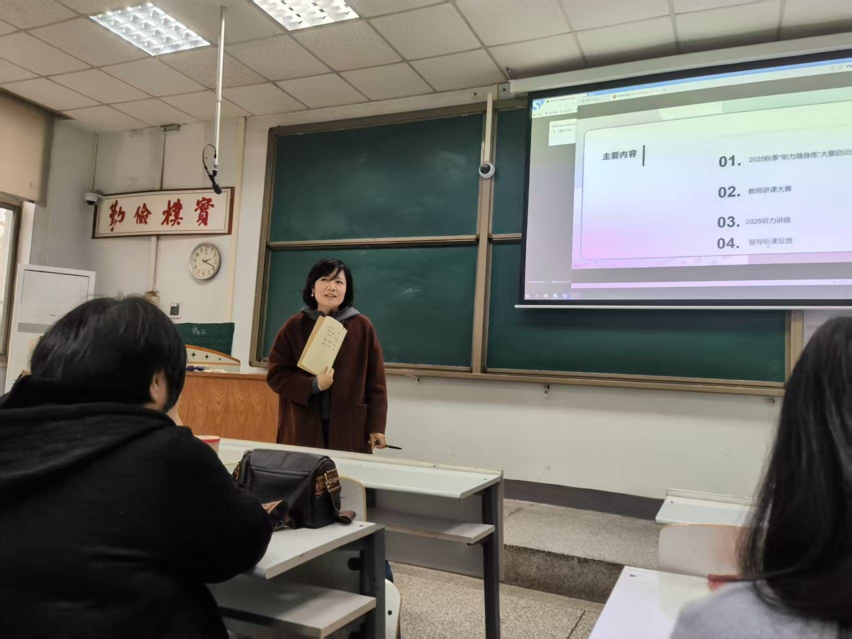 活动伊始,教研室主任王晓静老师主持2025秋季“听力随身练”大赛启动仪式。她详细解读了大赛的活动方案、参与流程及评分标准,强调大赛旨在激发学生英语听力练习的主动性,夯实学生语言基础。王晓静主任鼓励教师们积极动员学生参与,以赛促学、以赛促练,助力学生提升英语综合应用能力,同时要求教师做好赛事指导与过程跟踪工作。