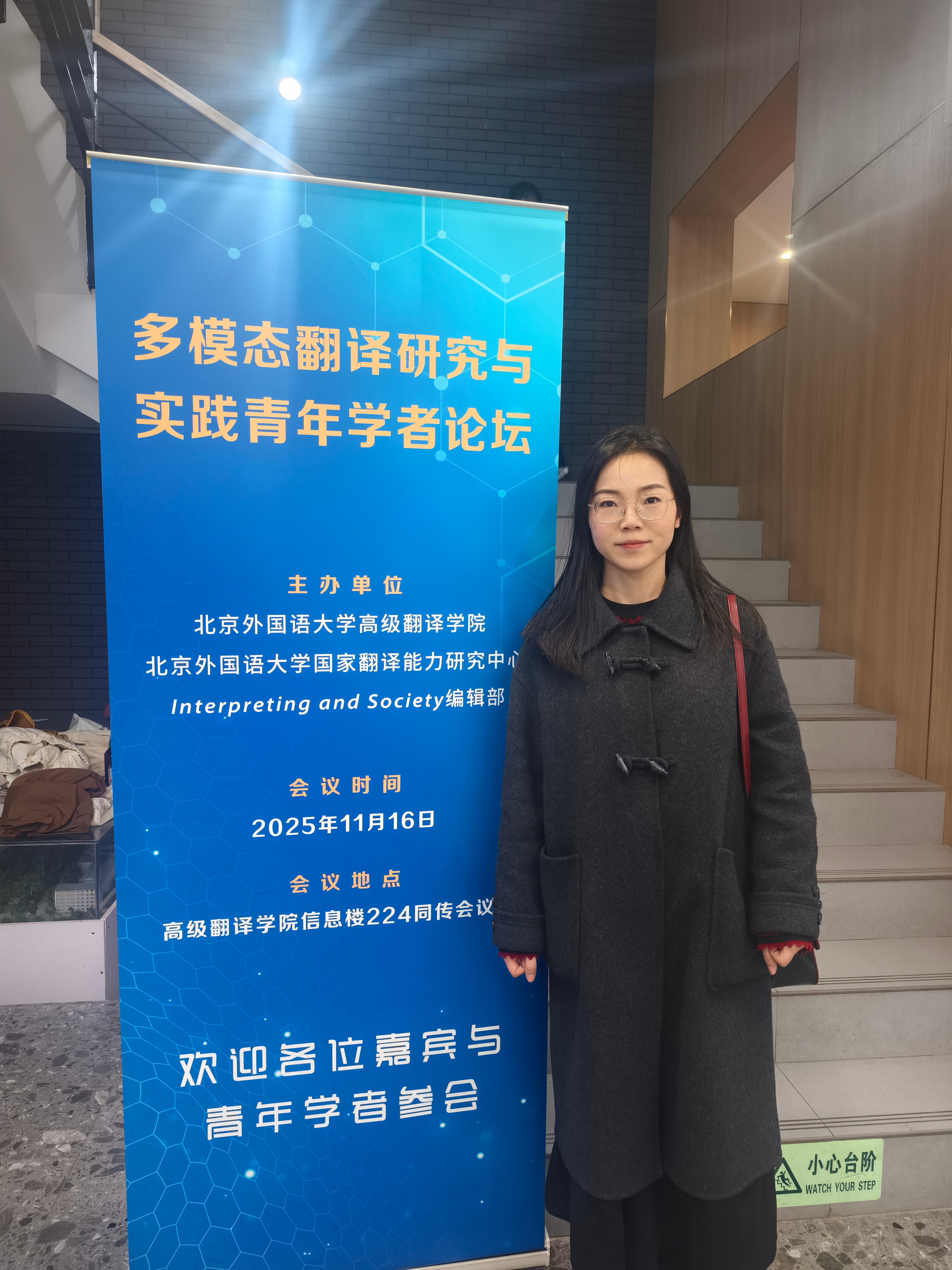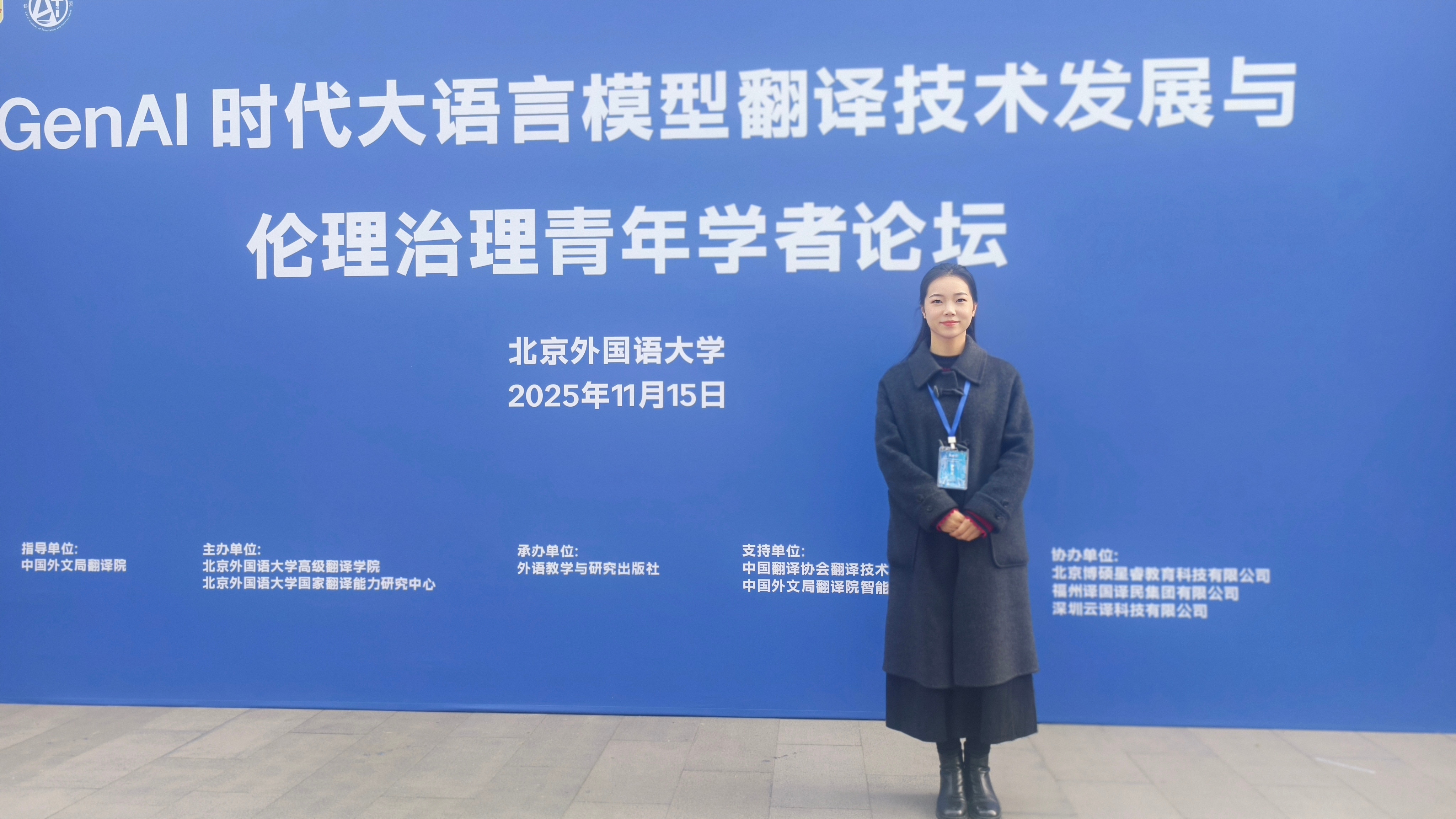 2025年11月14—16日,由中国外文局翻译院指导、北京外国语大学高级翻译学院主办的“GenAI时代大语言模型翻译技术发展与伦理治理青年学者论坛”及由北京外国语大学高级翻译学院、北京外国语大学国家翻译能力研究中心和《口译与社会》杂志编辑部共同主办的“多模态翻译研究与实践青年学者论坛”在北京外国语大学举行,我校外国语学院翻译教研室孙燕冉老师参加了此次论坛。