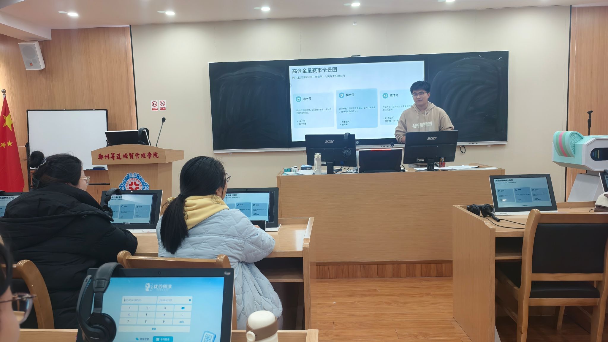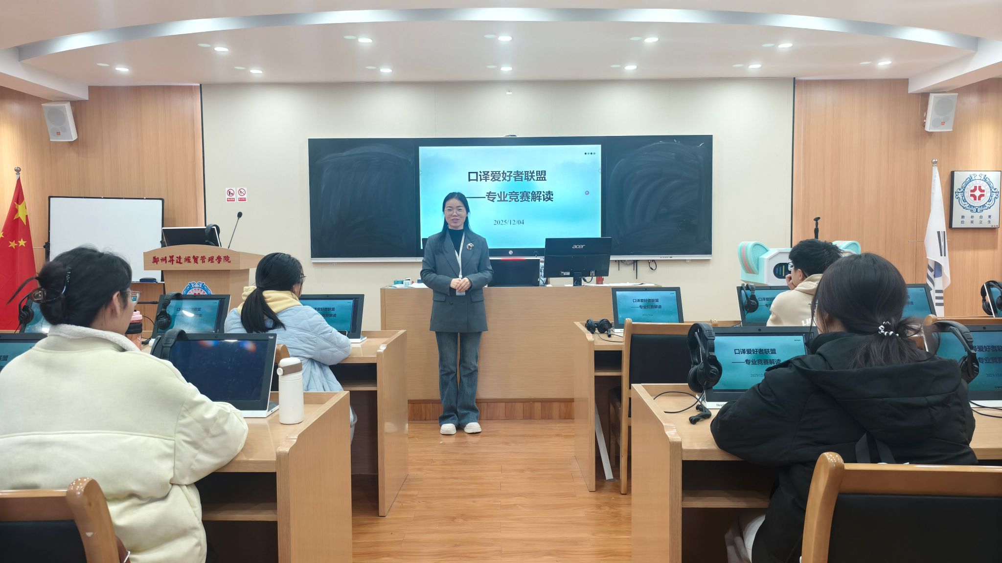 2025年12月4日,口译爱好者联盟社团的专业竞赛解读主题活动在实训大楼B座201同声传译实验室成功举办。本次竞赛以“精准传译、综合赋能”为核心,吸引了社团新老成员及校内语言爱好者积极参与,成为锤炼口译技能、展现语言风采的重要平台。