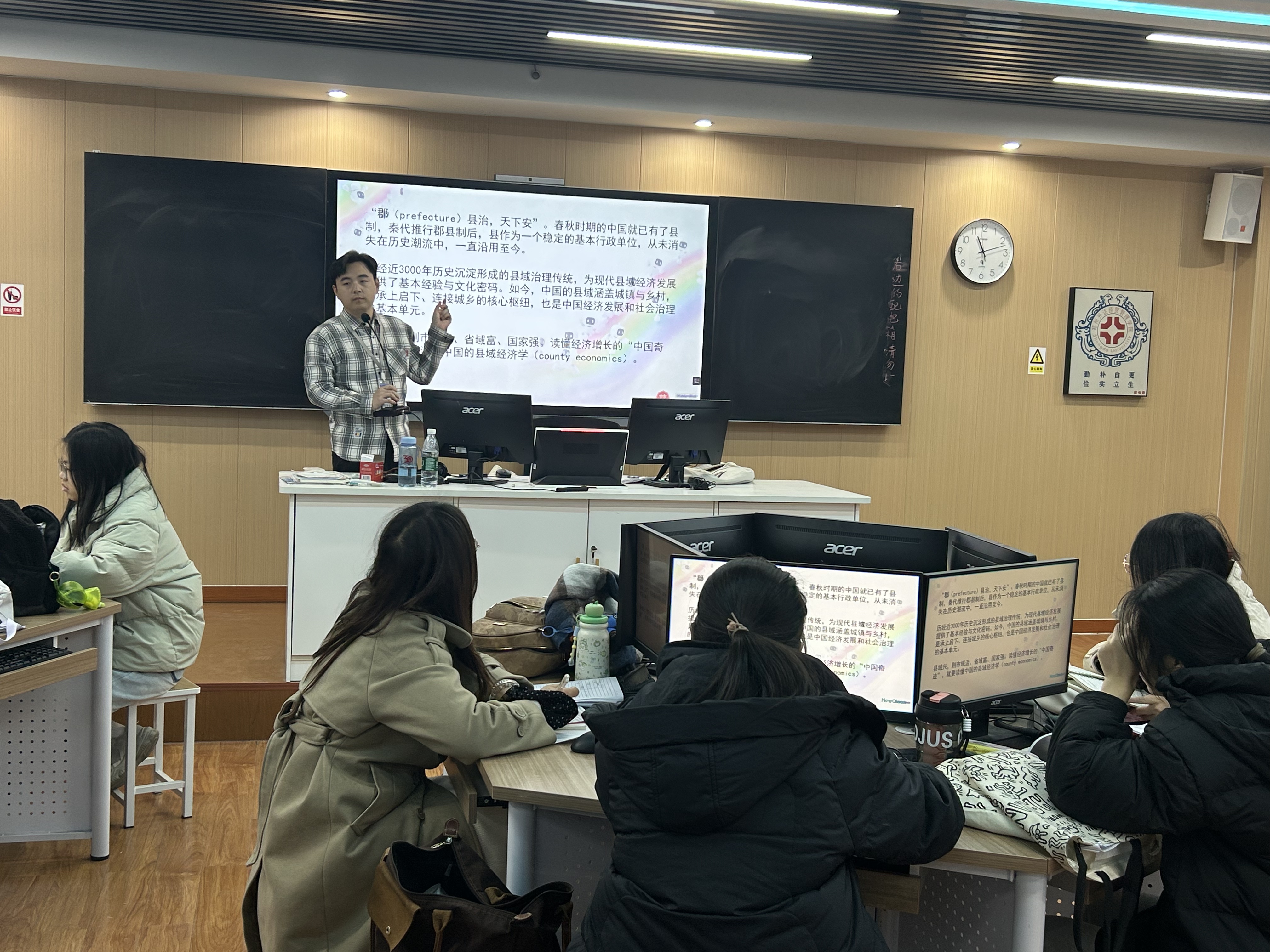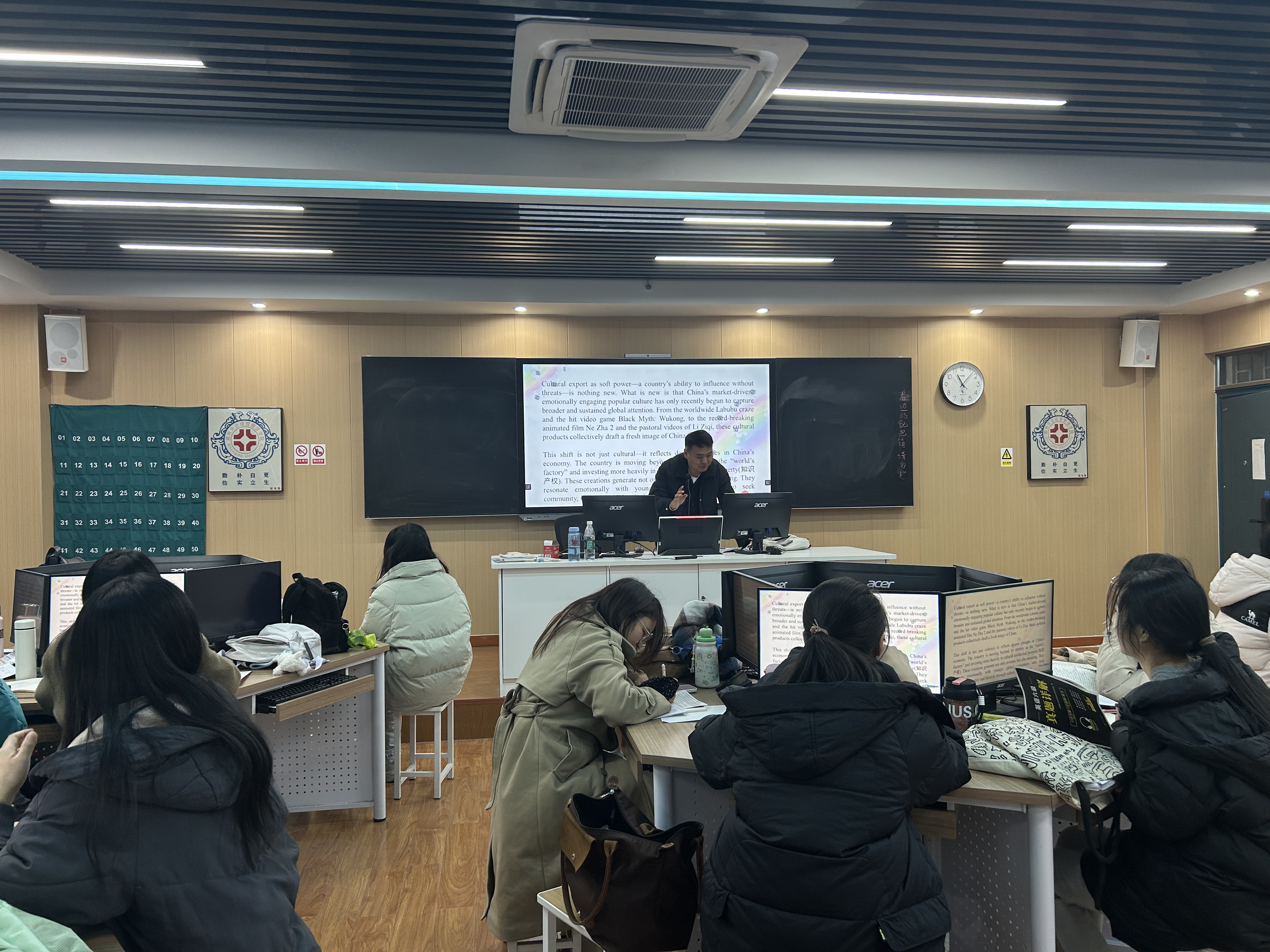 2025年12月8日下午,翻译教研室教师王余成、王明伟先后在综合实训楼B座207为参加本次翻译大赛的学生做了英译汉部分及汉译英部分的赛题讲评。王余成老师先从文本来源、文体风格和语言风格三个方面入手,分析了原文本,然后分段讲解了原文,从翻译单位和翻译技巧两个层次,把原文拆解重构。王明伟老师从原文分析、原文切分重构、初译改译方法、译文效果自评等角度,完成地再现了合理的翻译过程。