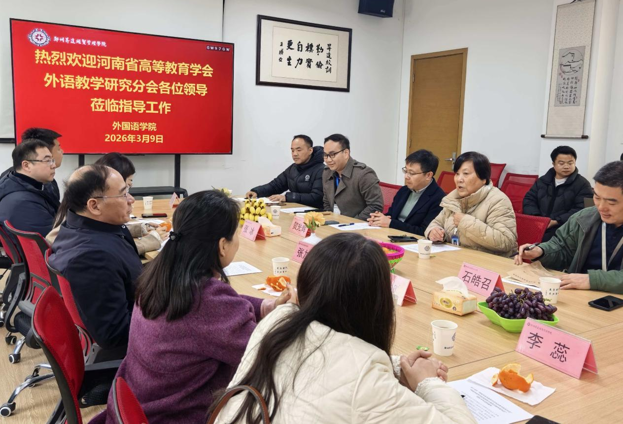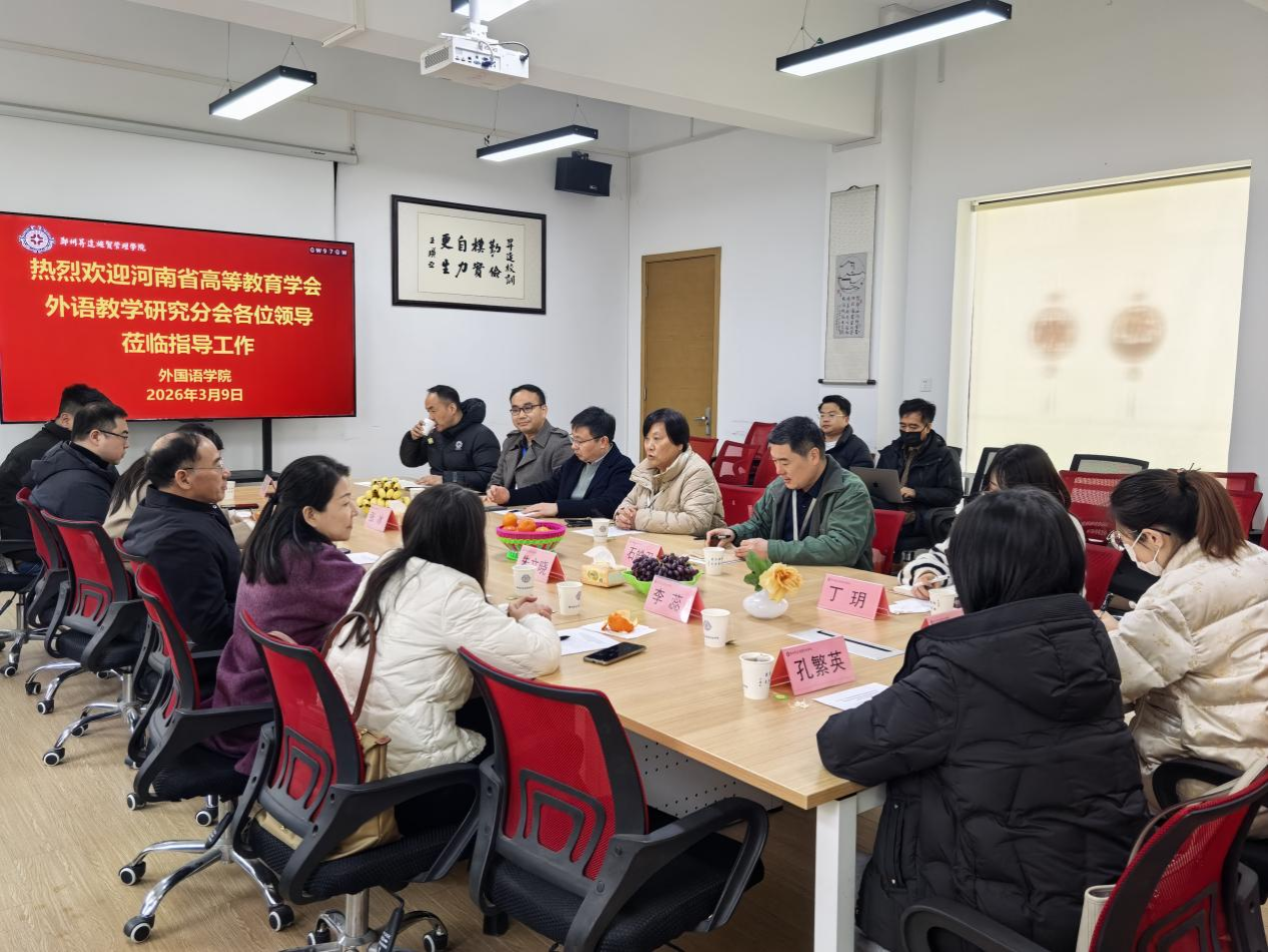 2026年3月9日上午,由河南省高等教育学会外语教学研究分会、河南省高等学校外国语言类教学指导委员会主办,郑州升达经贸管理学院承办的河南省高等教育学会外语教学研究分会及外语类教指委2026年年会协调会议在教学1号楼206外国语学院会议室顺利举行。本次会议围绕即将召开的年会筹备工作展开深入研讨,双方就会议组织、学术交流及合作事宜进行了广泛交流。