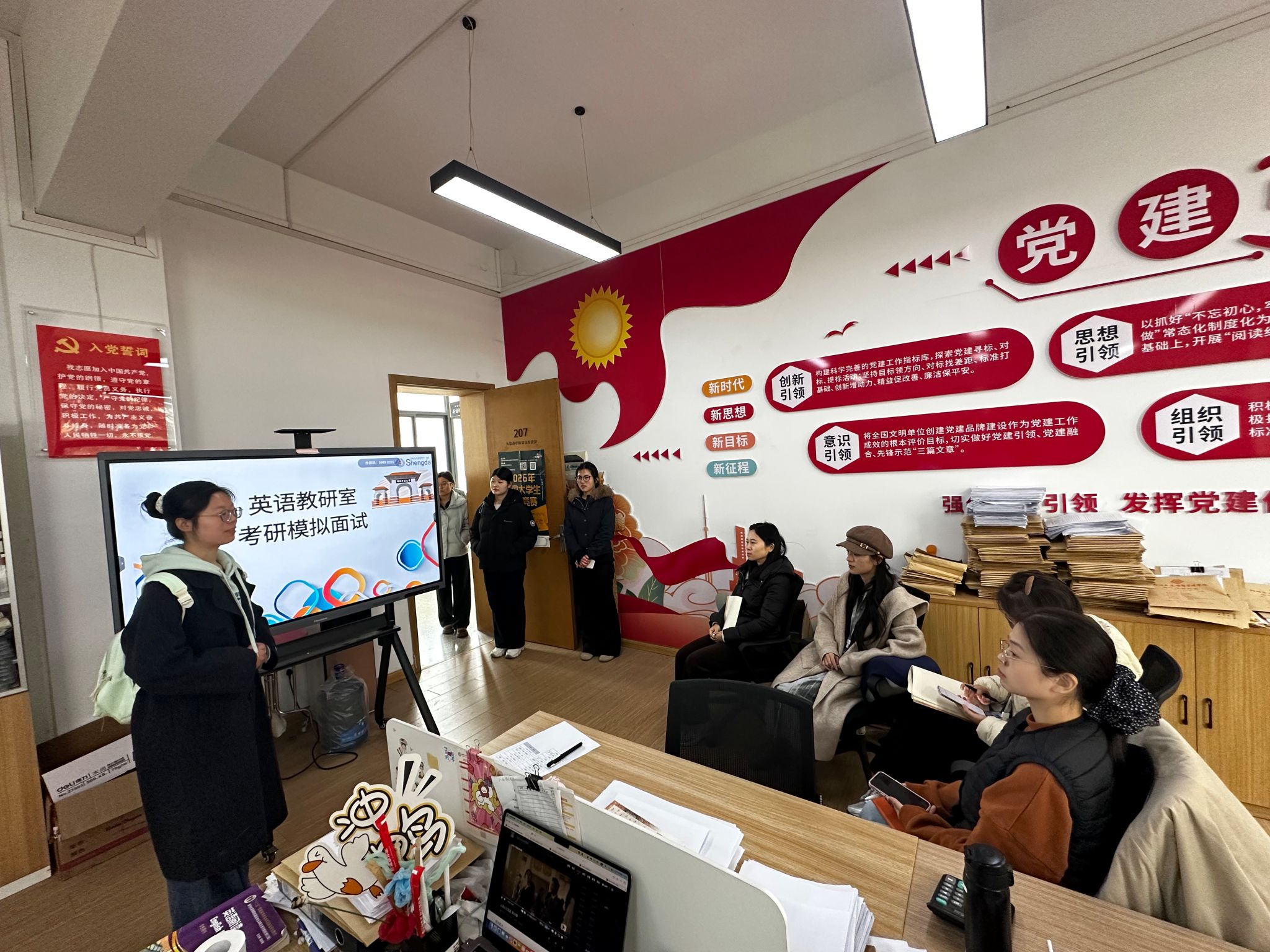为帮助备战2026年硕士研究生招生复试的学子熟悉面试流程、锤炼应试能力、缓解备考焦虑,3月19日,外国语学院英语教研室精心策划,为2026年考研学子开展考研模拟面试活动,以专业指导为学子们的复试征程保驾护航,助力学子们从容应考、圆梦理想院校。