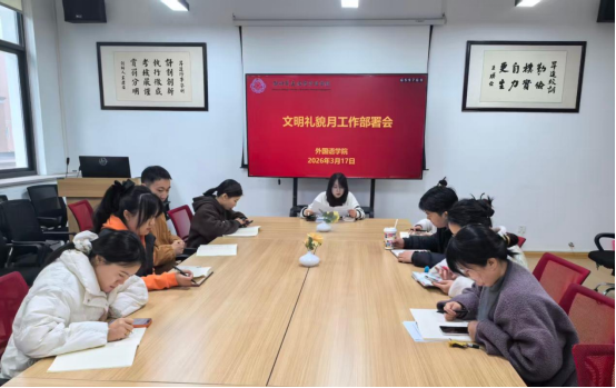 为深入落实学校文明礼貌月活动工作要求,扎实推进外国语学院学生文明素养培育工作,营造文明和谐的校园氛围,3月17日,外国语学院在教学一号楼206会议室召开2025-2026学年第二学期文明礼貌月工作部署会。本次会议由学院党委副书记丁玥主持,全体辅导员参会。