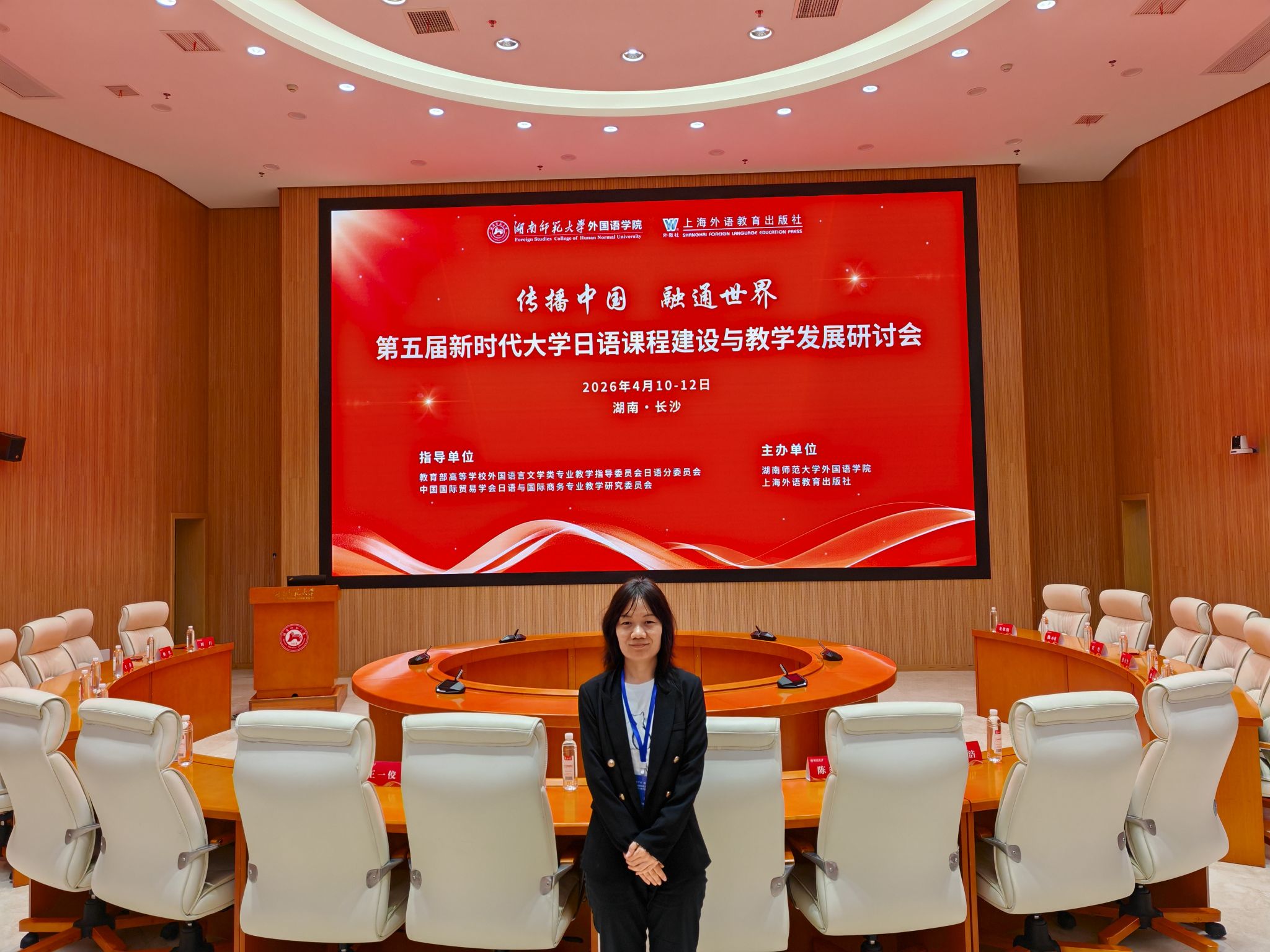 2026年4月11日,第五届新时代大学日语课程建设与教学发展研讨会在湖南师范大学隆重召开。我校外国语学院日语教研室主任张峰受邀参会,与来自全国多所高校的日语教育专家、一线教师齐聚一堂,共探新时代日语教育改革与发展之路。