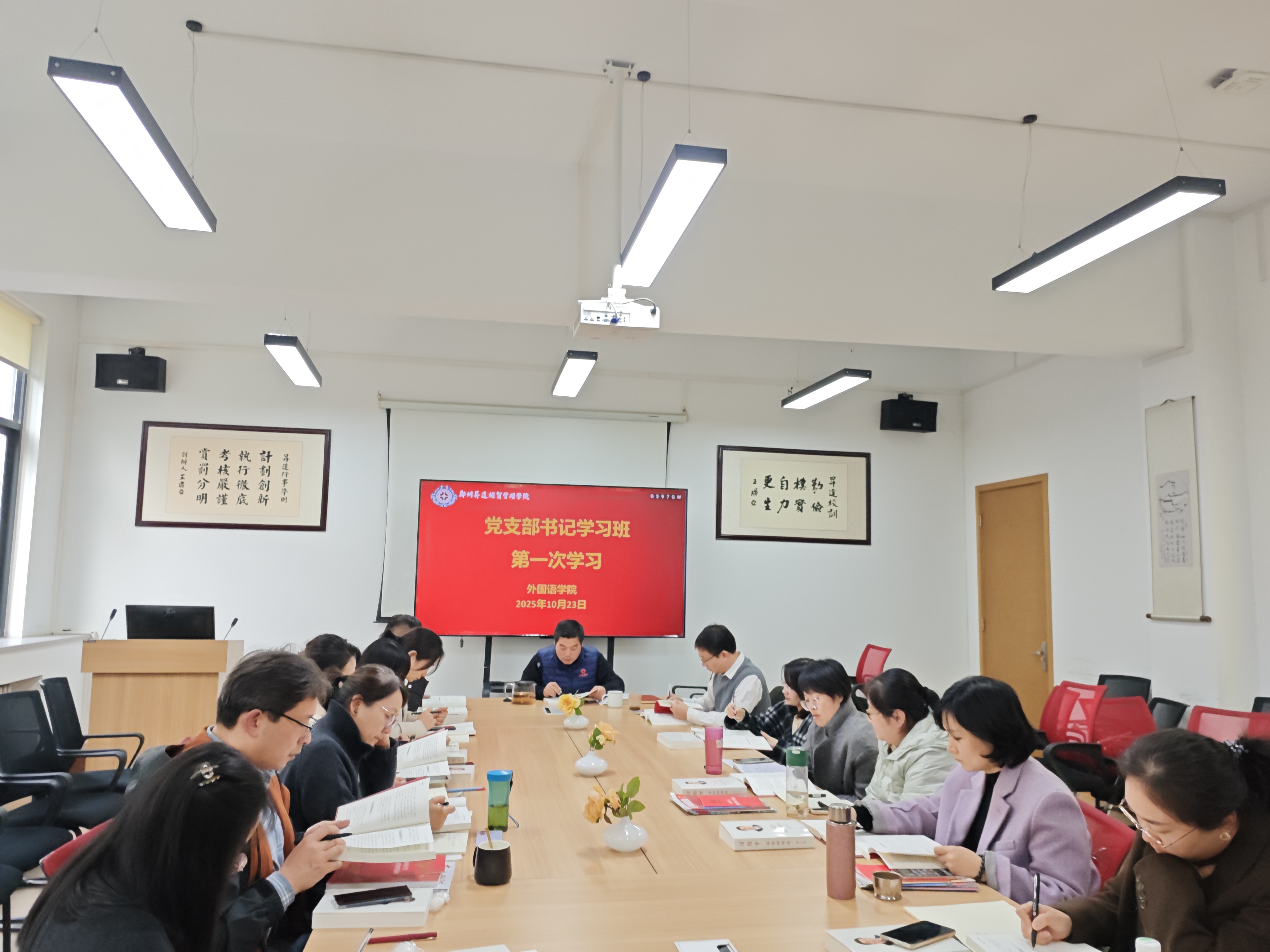 为进一步提升党支部书记开展融合型党建的工作能力和水平,经外国语学院党委(扩大)会研究决定,以《融合型党建》为教材,举办一期党支部书记学习班。2025年10月23日,党支部书记学习班在学院206会议室顺利开班并开展第一次学习,学习由学院党委书记石皓召同志主持,全体党委委员和各党支部书记参加。