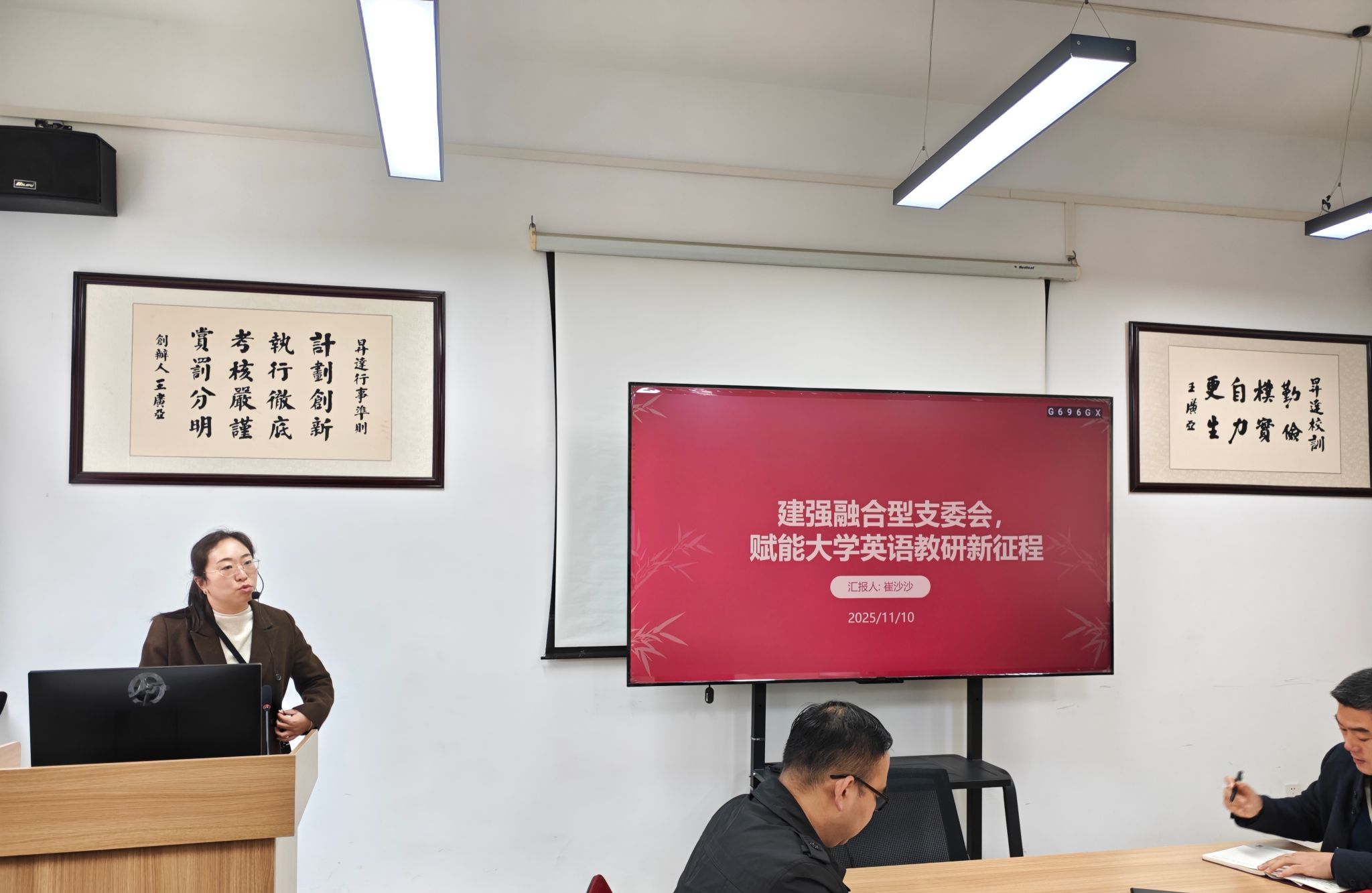 本次学习会聚焦党建与业务深度融合的实践路径,采取专题领学、集体研讨的形式开展。大学英语第二教研室党支部书记崔沙沙同志围绕《融合型党建》第四篇“融合型支委会”作专题领学。她结合支部工作实际,系统解读了如何通过优化支委会运行机制,推动党建工作与教学科研、师资队伍建设等中心工作同频共振,并分享了本支部在议题设置、决策协同、责任落实等方面的创新做法。