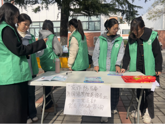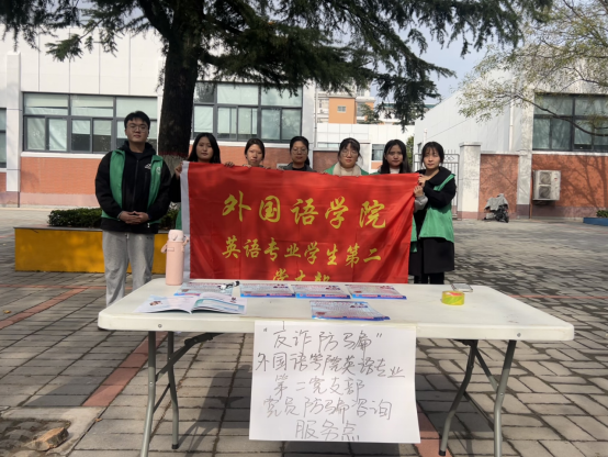 外国语学院2025年“党员实践月”(七)---英语本科专业学生第二党支部开展“反诈驿站 守护同行”校园反诈宣传服务活动