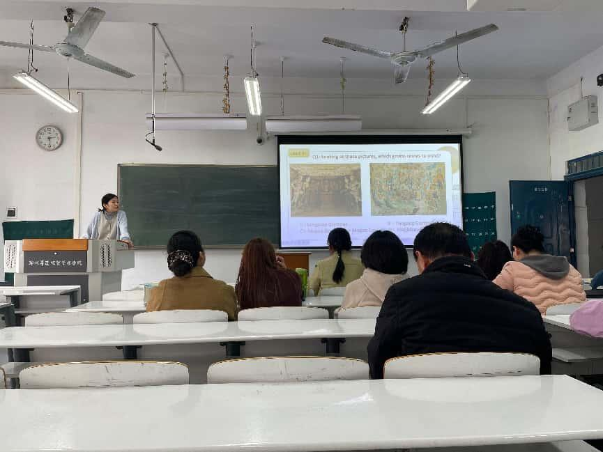 本次比赛严格遵循学院工作安排,以“挖掘思政元素、创新教学方法”为核心。参赛教师围绕教材知识点,结合党的二十届四中全会精神中的时代内涵,通过案例分析、情境互动等形式自然融入思政教育。赵梦真老师的课程依托BOPPPS模型,通过节奏互动实验巧妙导入课文《Deaf DJ》,引导学生绘制主人公的“梦想导航图”。结合党的二十届四中全会精神,引导学生思考个人梦想与中国式现代化的联系,激励学生发扬“Why not?”的担当精神。陈延楠老师以教材里的“美国梦”为教学切入点,先梳理其文化背景与核心内涵,再自然延伸至“中国梦”的阐释。在中外理念的对比中,帮助学生深刻理解“中国梦”的时代价值与现实意义,让思政引领融入知识讲解的每一个环节。普晖老师以敦煌石窟守护者的鲜活经历为切入点,讲述他们跨越时光、默默守护文化瑰宝的初心与担当,从具体的遗产保护案例自然过渡到对传统文化传承的思考,引导学生理解 “守护” 是传承的基础,“传承” 是文化延续的核心。