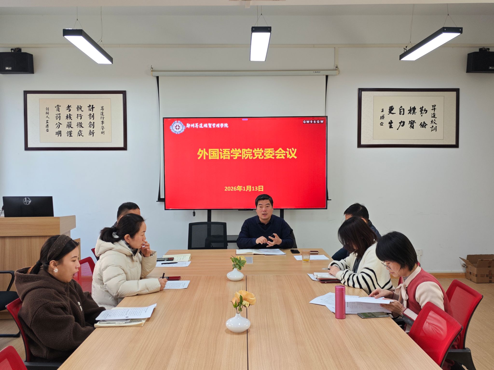 2026年1月13日,外国语学院党委在学院会议室召开党委会议,专题研究推荐校级党建强基引领“三级联创”样板党支部及“双带头人”教师党支部书记工作室的遴选推荐工作。会议由院党委书记石皓召主持,全体党委委员参加会议。