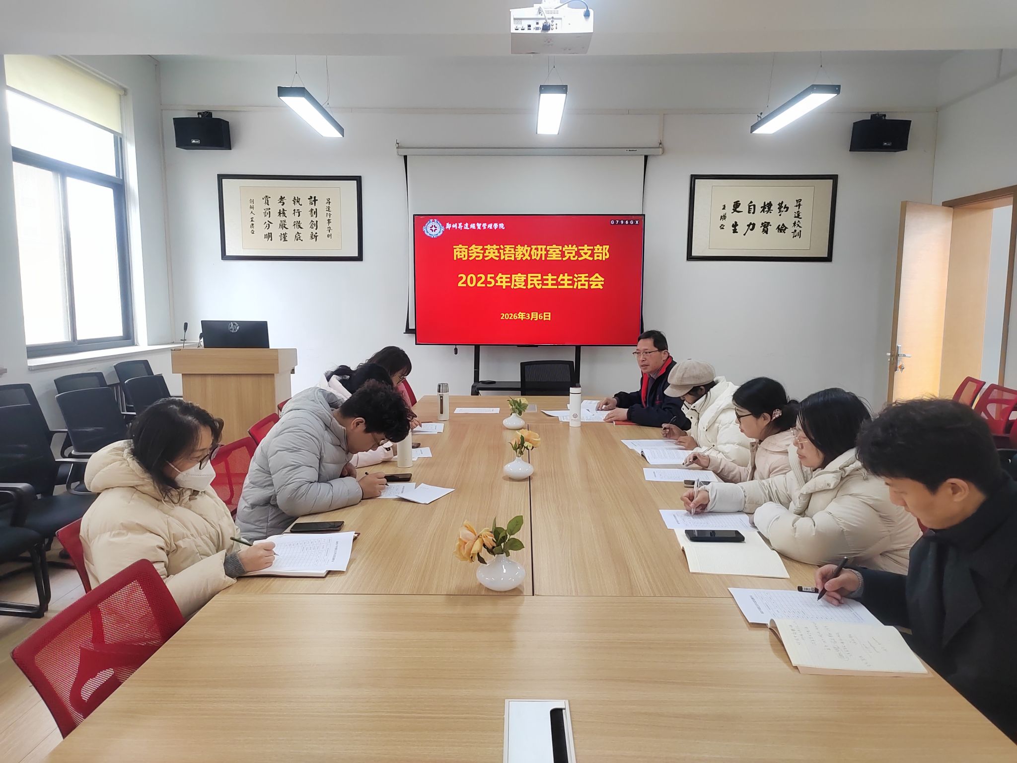 2026年3月6日下午,商务英语教研室党支部召开2025年度组织生活会,并同步开展民主评议党员工作。党支部全体党员参加会议,会议由党支部书记张保培主持。